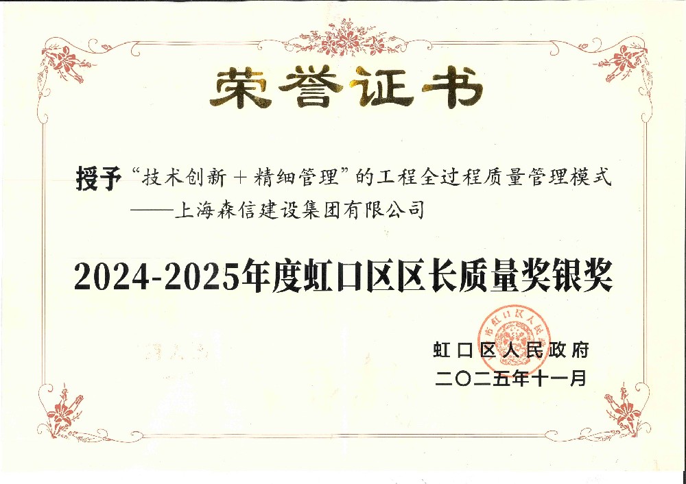 森信集團(tuán)榮獲2024-2025年度虹口區(qū)區(qū)長(zhǎng)質(zhì)量獎(jiǎng)銀獎(jiǎng)